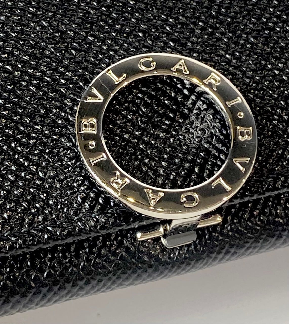 カラー:ブラック 素材:レザー サイズ:H:9.5×W:19×D:2cm 開閉:金具開閉式 仕様:札入れ×1 小銭入れ×1 カード入れ×7 その他ポケット×4 付属品:ブルガリ専用ボックス 生産国:ITALY