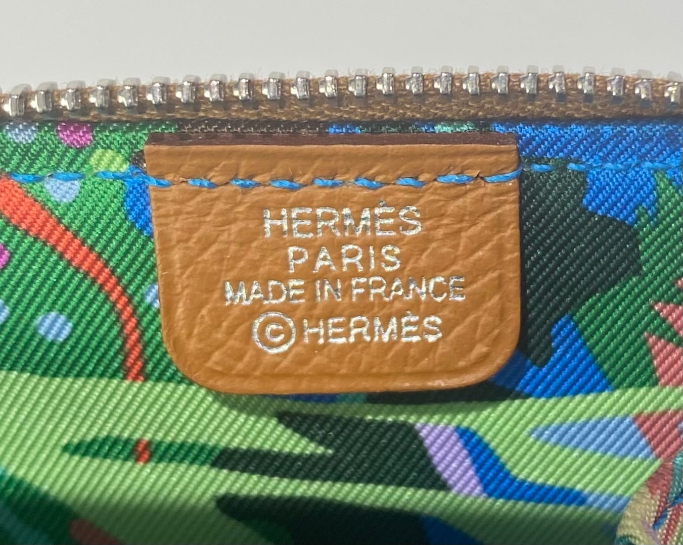 ●色:ブラウン/ブルー系マルチ ●サイズ:約8×8×1.5cm ●素材:レザー/シルク ●生産国:フランス ●付属品:ブランド箱