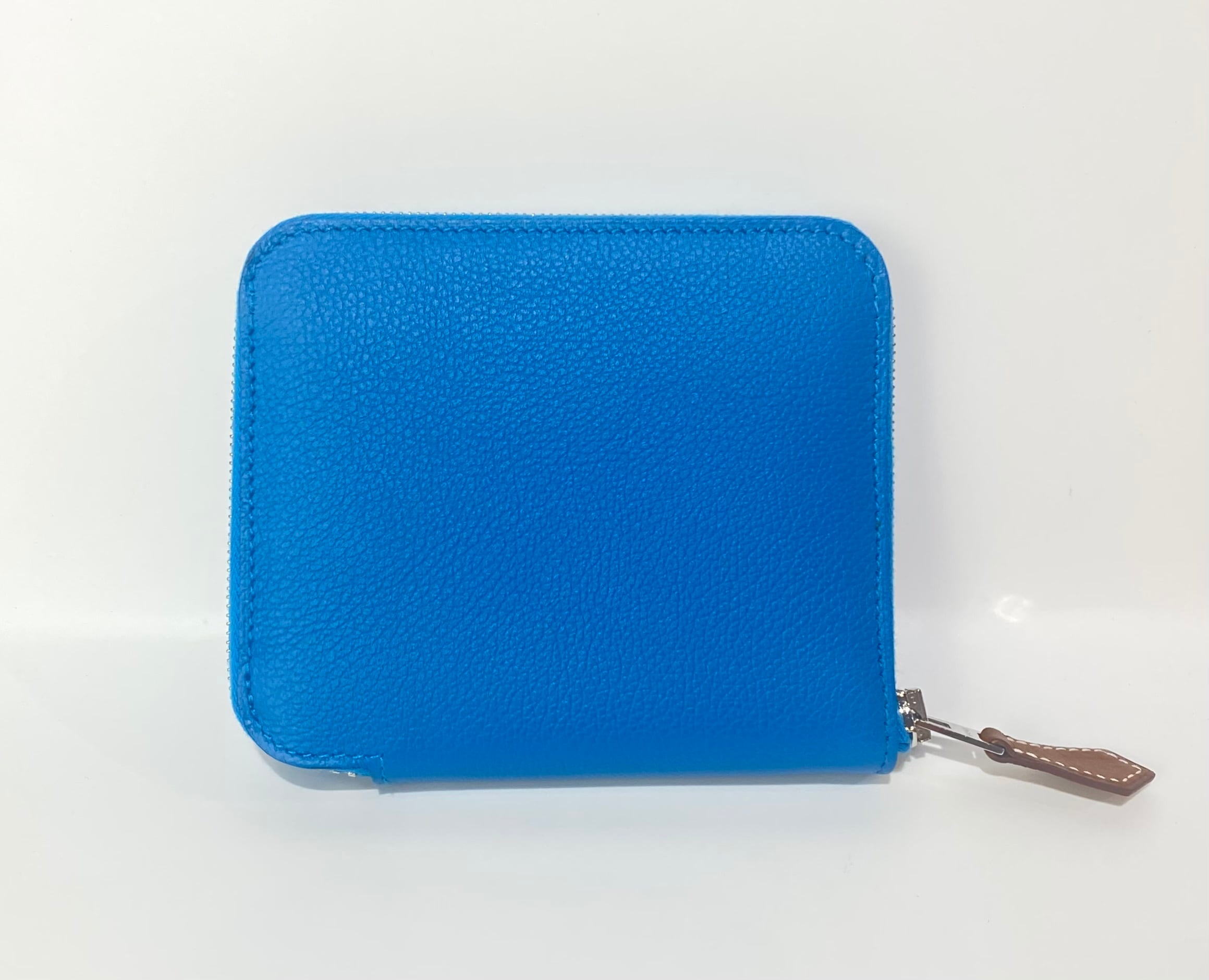 ●色:ブルー/ブルー系マルチ ●サイズ:約9.5×11×1.5cm ●素材:レザー/シルク ●内側:メインポケット×2、カードポケット×6、ジップ式小銭入れ×1、 ●生産国:フランス ●付属品:ブランド箱