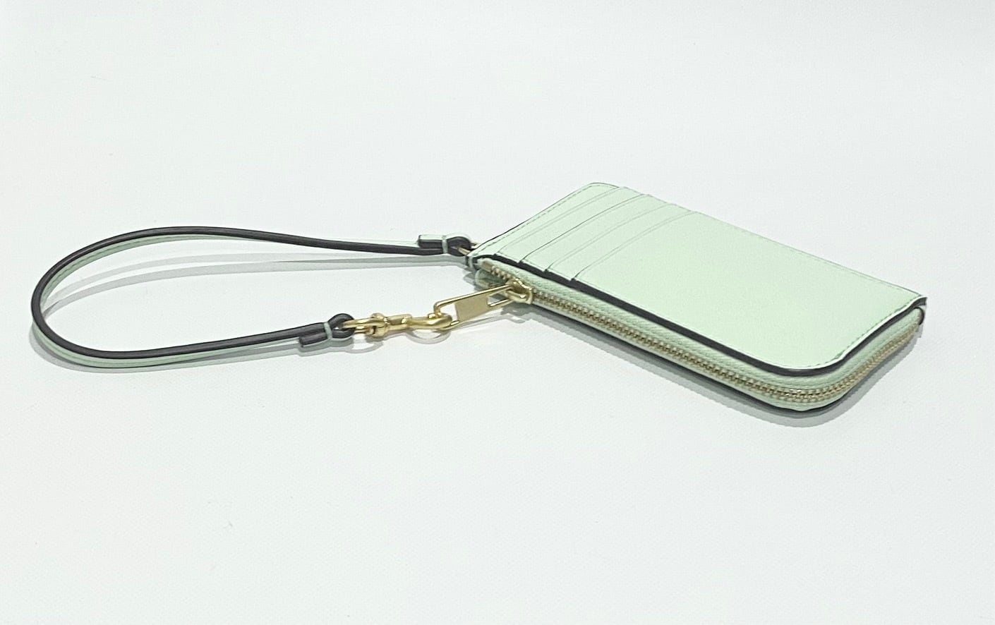 素材:バイオテックスレザー 色 :MEADOW MIST / メドウミスト(ライトグリーン) サイズ:約7.5×12.8×1㎝ 開閉:ファスナー式 内側:- 外側:カードポケット×4、ファスナー式小銭入れ×1 付属品:-