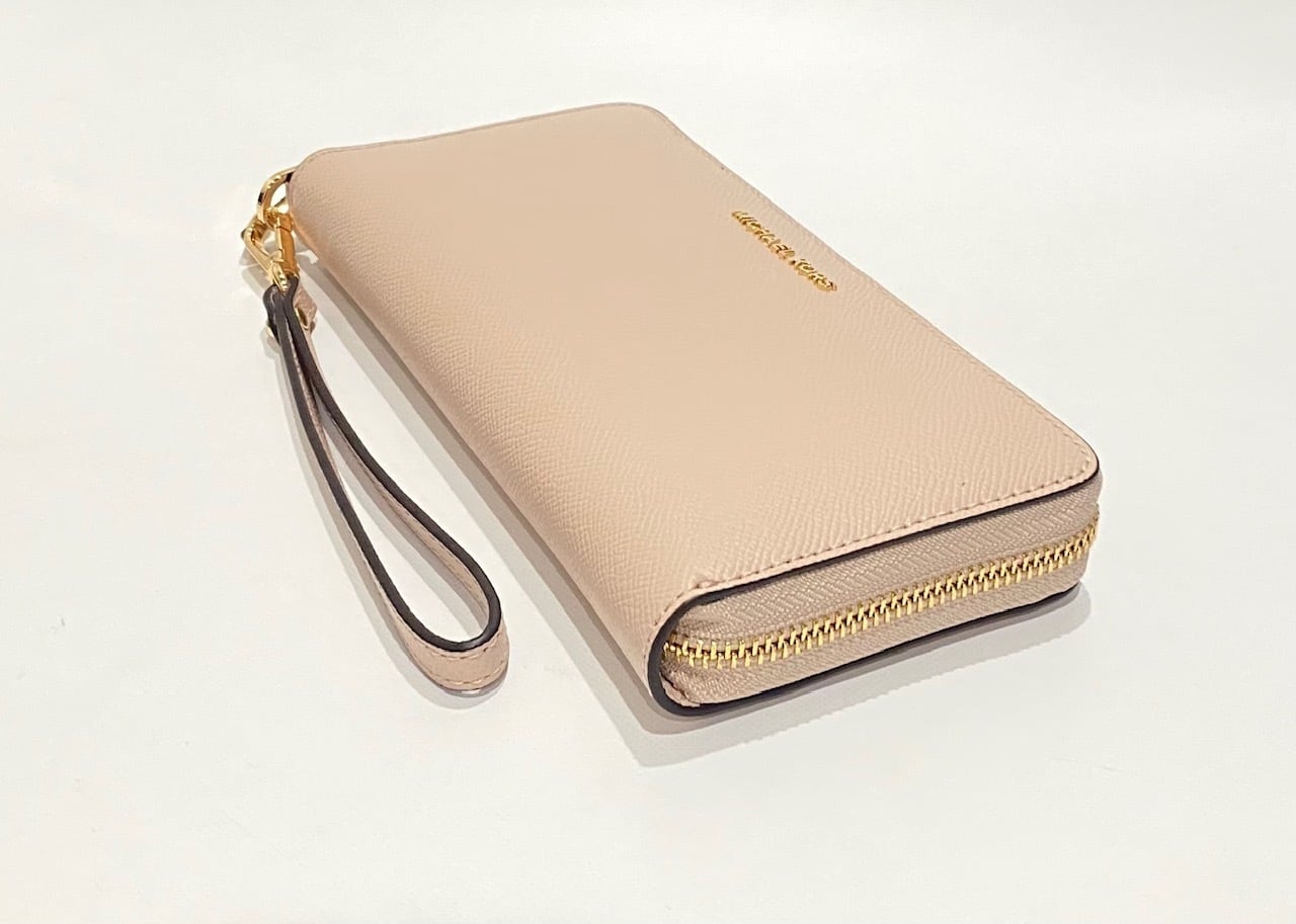 素材:レザー カラー:グレイッシュピンク サイズ:約H10×W21×D2.5cm 開閉:ファスナー式 内側:ファスナー式小銭入れ×1,札入れ×3,カードポケット×16,窓付きポケット×1,オープンポケット×3 外側:ストラップ約 19cm (取り外し可) 付属品:-
