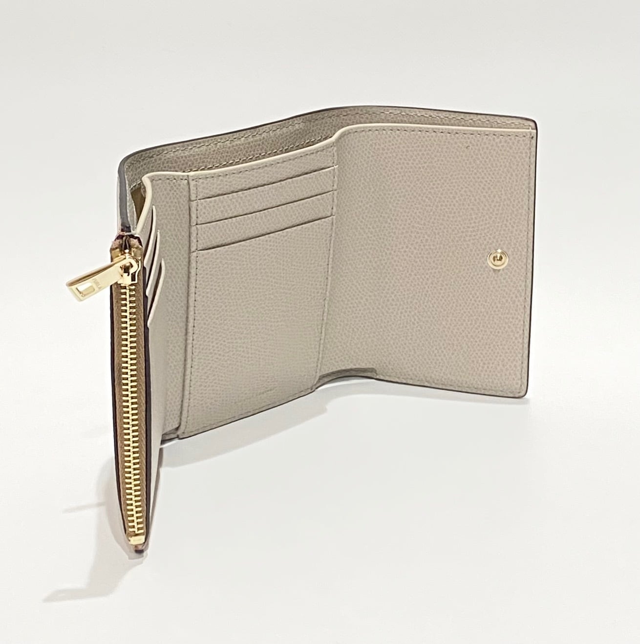 素材:レザー カラー:サンド サイズ:約H9xW12xD2.5cm 開閉:スナップ式 小銭入れ開閉:ファスナー 小銭入れ仕切:無 内側:札入れ×1、ファスナー式小銭入れ×1、カードポケット×6、オープンポケット×2 外側:- 付属品:純正布袋、BOX