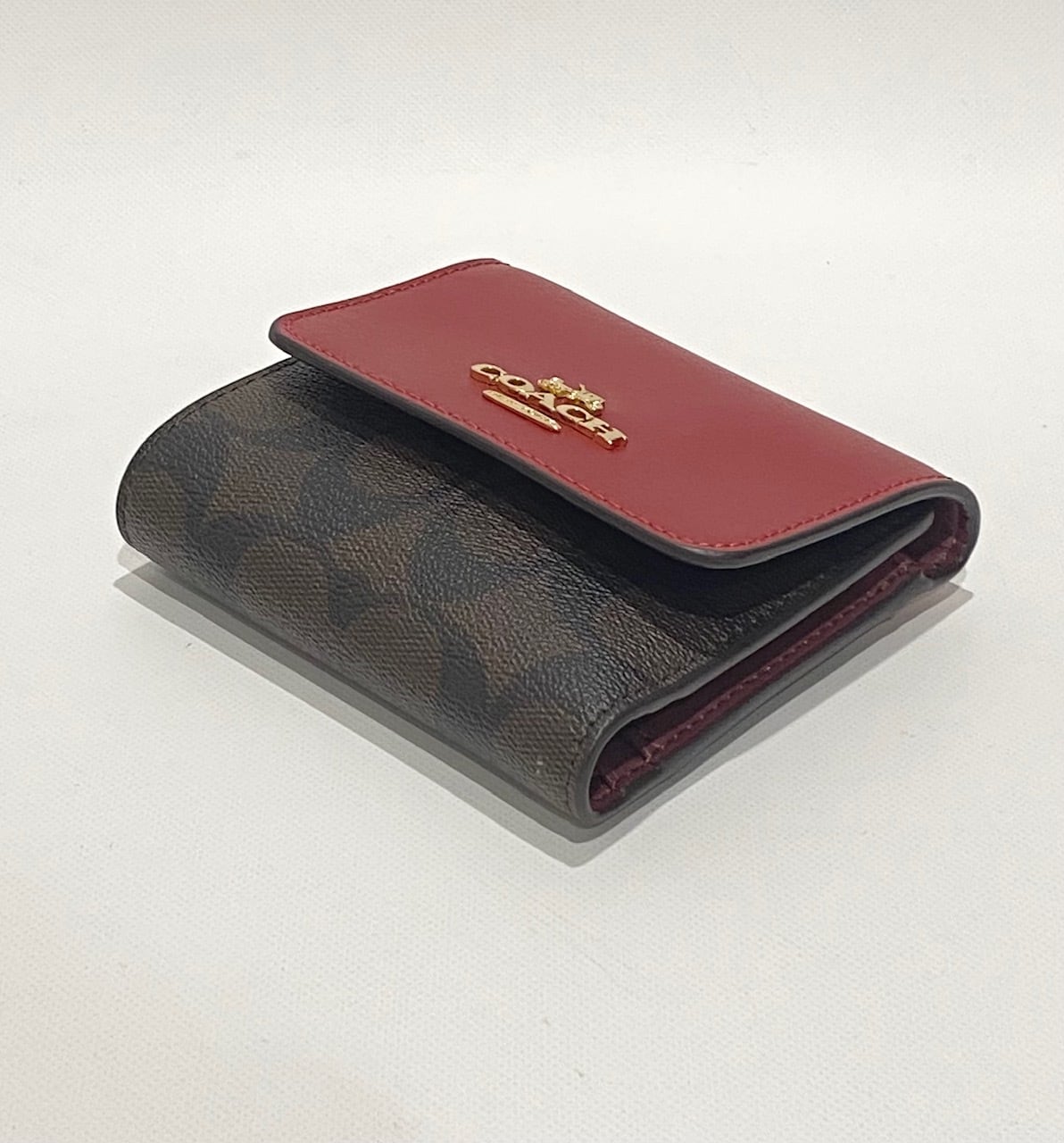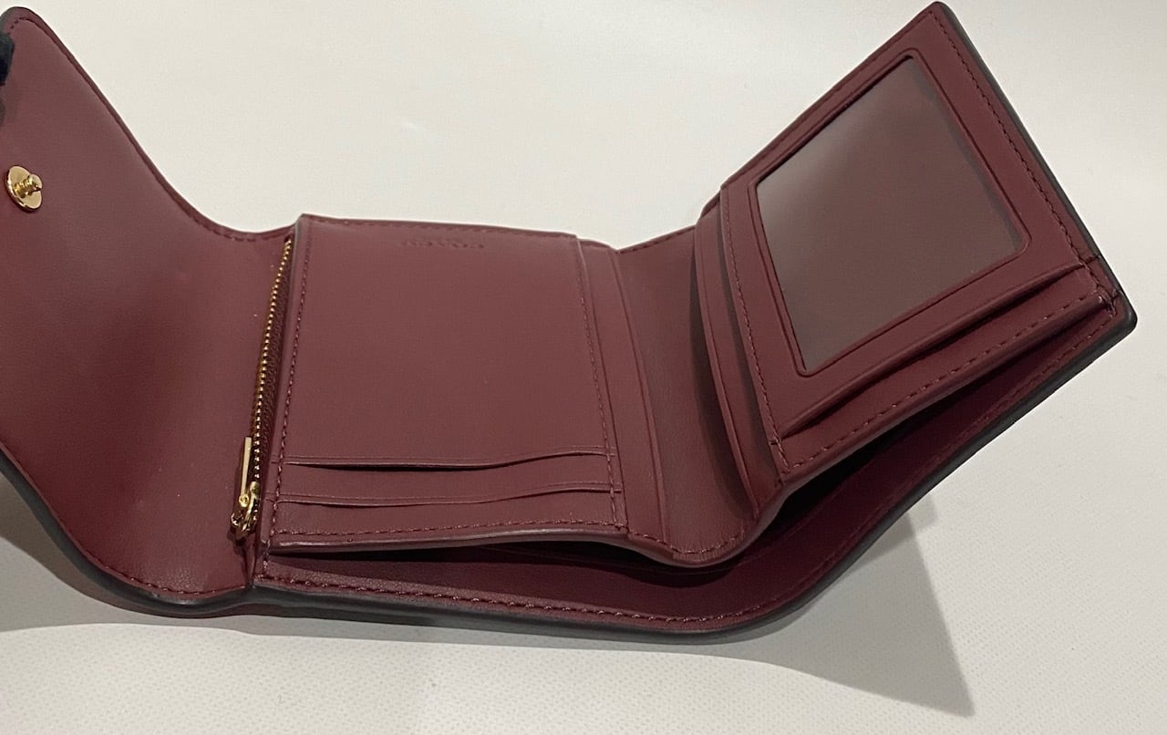 素材:PVC/レザー 色 :レッド×ブラウン サイズ:約H10×W11×3㎝ 開閉:スナップ式 内側:札入れ×1、カード入れ×2_、定期入れ×1_、ポケット×4、ファスナー小銭入れ×1 外側:ポケット×1 付属品:-