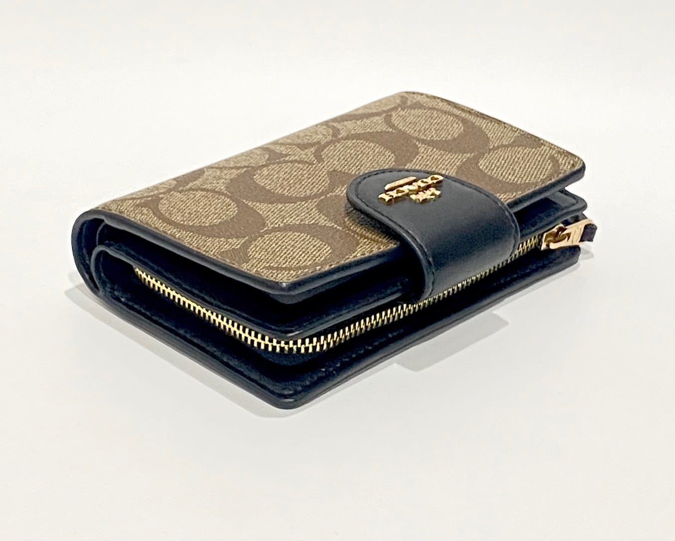 素材:PVC/レザー 色 :カーキ×ブラック サイズ:約8.5×13×3㎝ 開閉:スナップボタン式 内側:ファスナー式小銭入れ×1、札入れ×1、オープンポケット×2、カードポケット×7、パスケース×1 外側:- 付属品:-