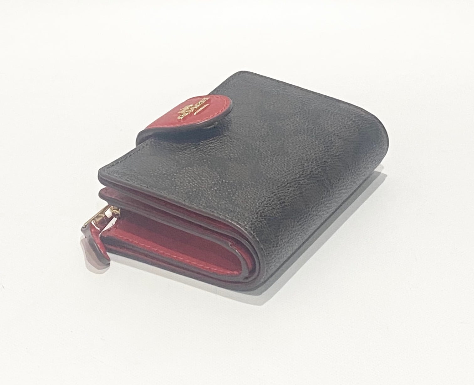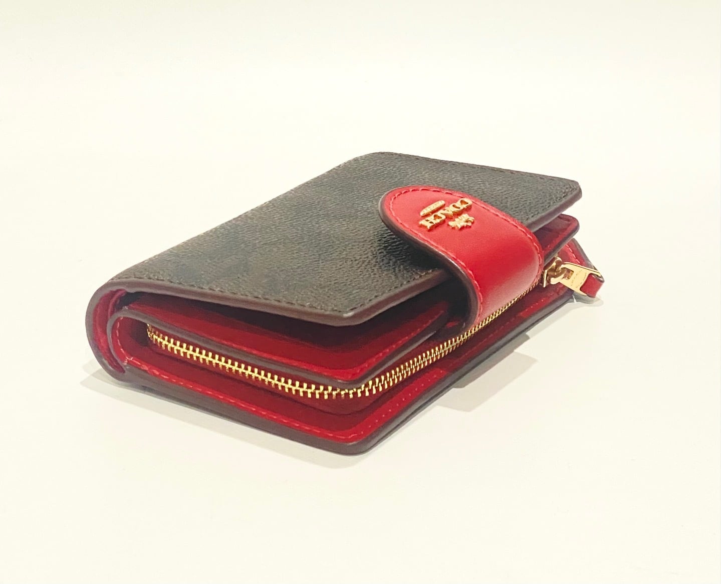 素材:PVC/レザー 色 :ウォルナットボールドレッド サイズ:約8.5×13×3㎝ 開閉:スナップボタン式 内側:ファスナー式小銭入れ×1、札入れ×1、オープンポケット×2、カードポケット×7、パスケース×1 外側:- 付属品:-