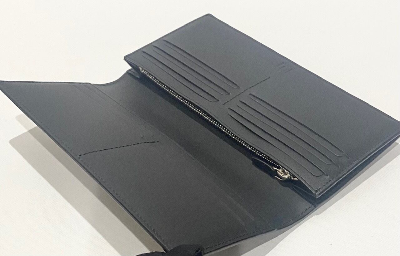 素材:コーテッドキャンバス、レザー 色 :ブラック サイズ:約H9.5×W19.5×D2㎝ 仕様:オープン開閉 内側:札入れ×1、小銭入れ×1、カード入れ×10。オープンポケット×2 外側:- 付属品:ブランド箱