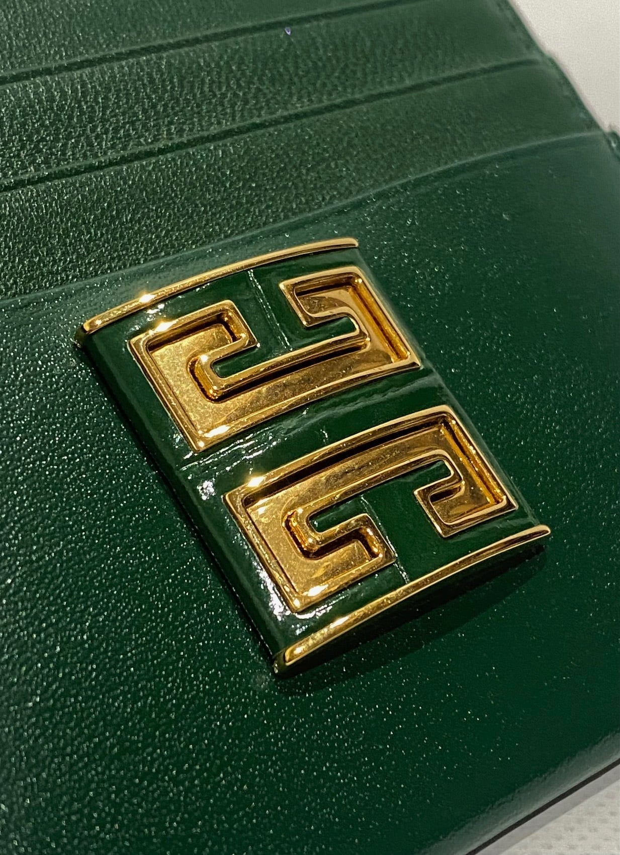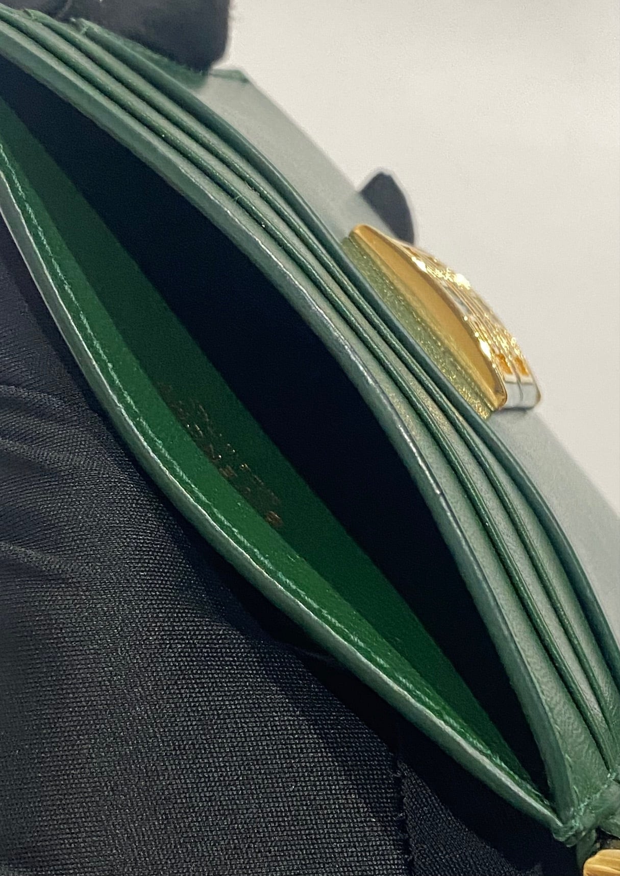 素材:- 色 :グリーン サイズ:約H8.5×W11×D0.5㎝ 開閉:オープン式 内側:ポケット×1 外側:カードポケット×6 付属品:ブランド箱