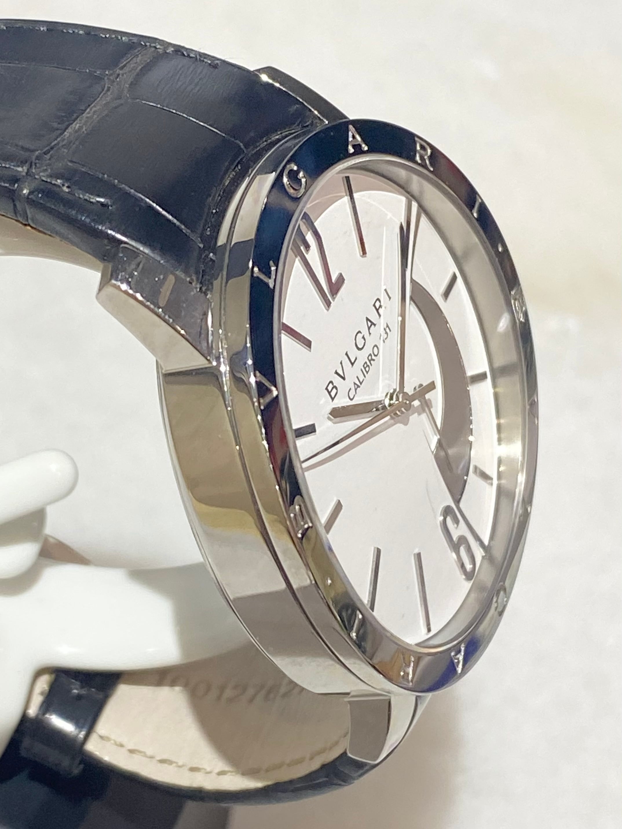 ●文字盤色:ホワイト ●素材:(ケース)SS/(バンド)アリゲーター革/(風防)サファイアガラス ●ムーブメント:手巻き ●防水性能:日常生活防水 ●サイズ:(ケース)約36×36×9mm/(重量)約89g/(腕回り)約17〜20cm ●製造国:スイス ●保証期間:2年間