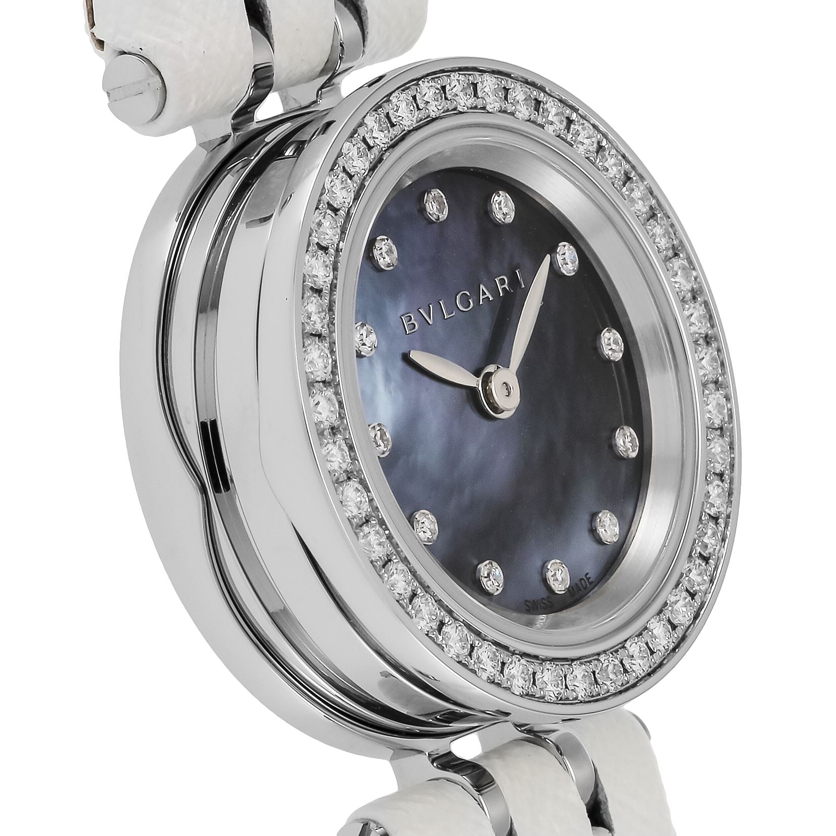 ●文字盤色:ブルーパール ●素材:(ケース)SS/(バンド)カーフ革/(風防)サファイアガラス ●ムーブメント:クォーツ ●防水性能:日常生活防水 ●サイズ:(ケース)約17.5×17.5×8.5mm/(重量)約26.5g/(腕回り)約12〜16cm ●製造国:スイス ●保証期間:2年間