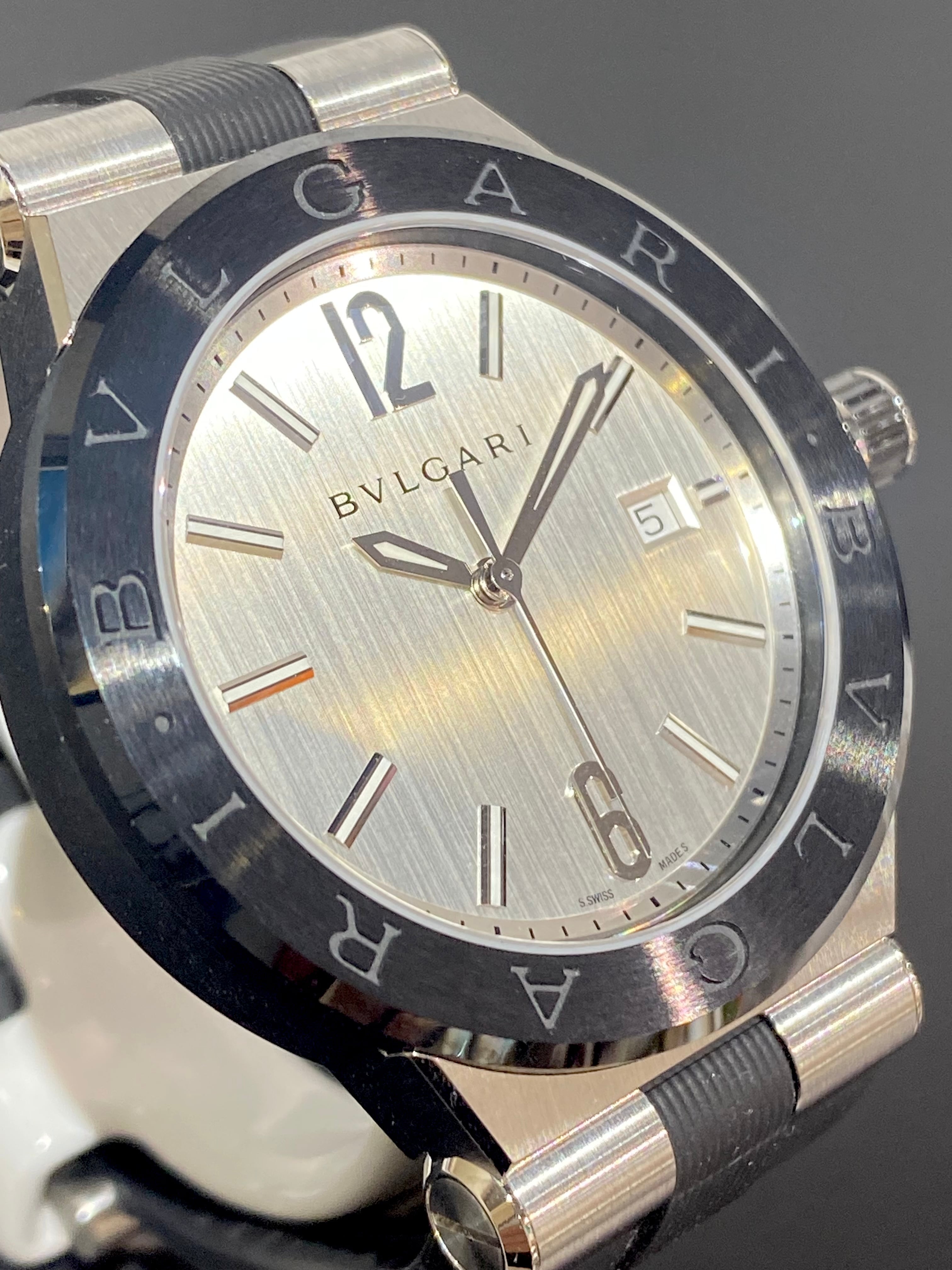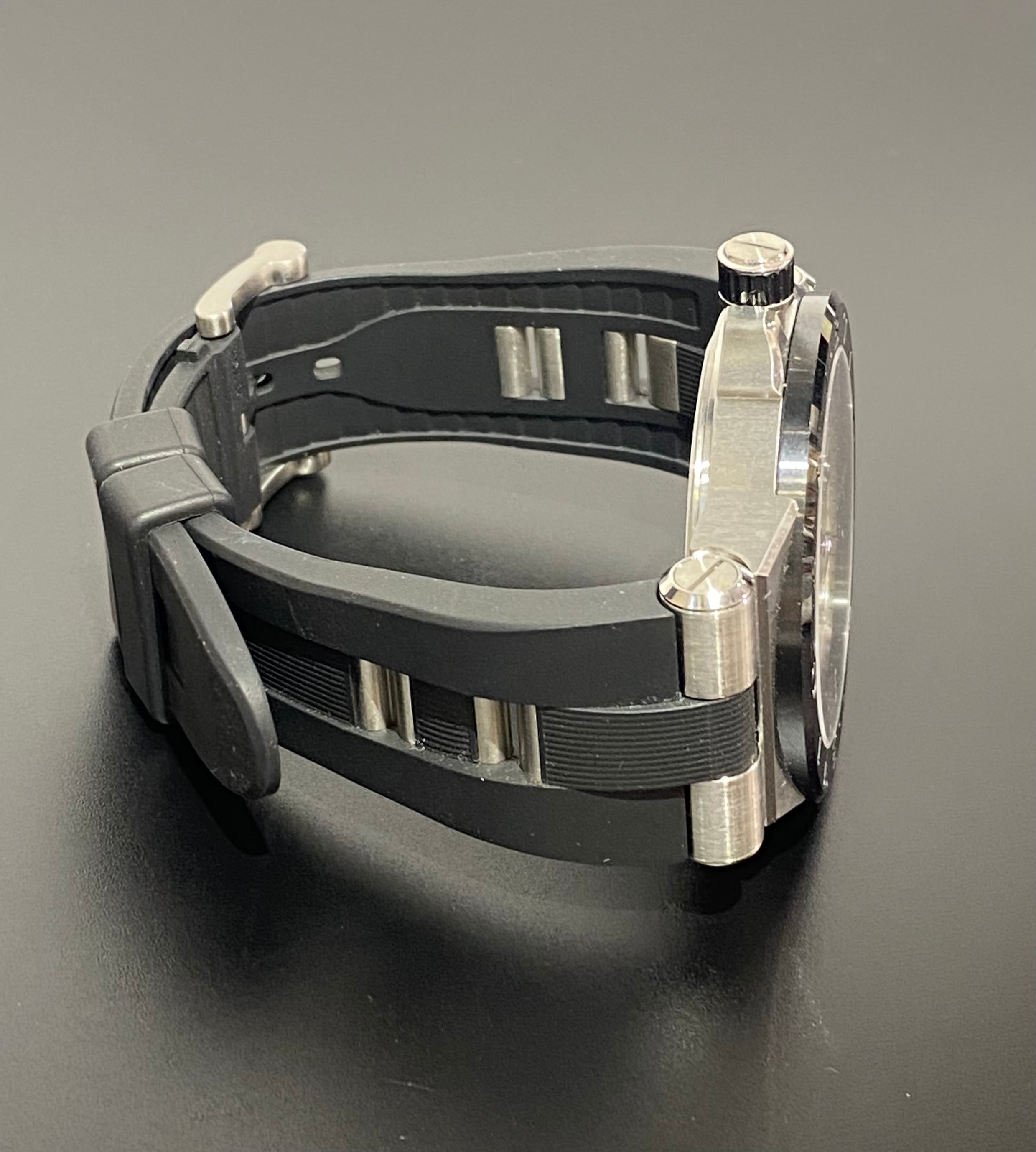 ●文字盤色:シルバー ●ケース素材:ステンレススチール×セラミック ●バンド素材:ラバー ●風防素材:サファイアガラス ●ムーブメント:自動巻 ●防水性能:100M防水 ●サイズ:(ケース)約42×42×10mm/(重量)約111g ●腕周り:約15.5〜21cm ●製造国:スイス ●保証期間:2年間