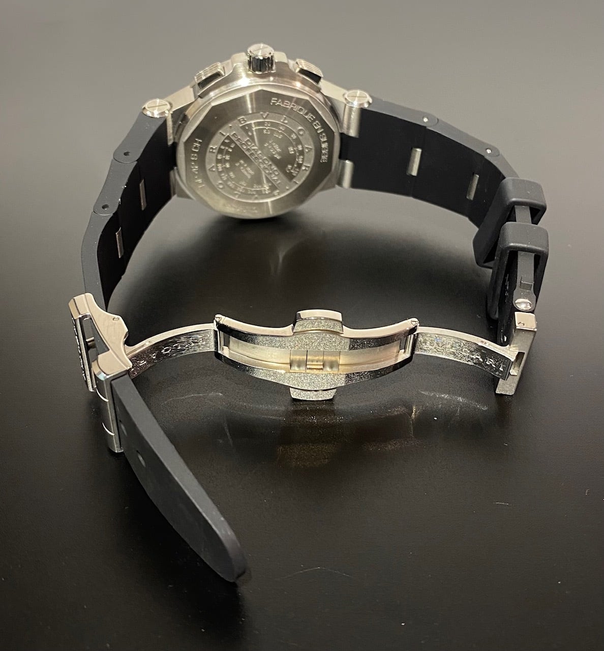 ●文字盤色:ブラック ●素材:(ケース)SS/(バンド)ラバー/(風防)サファイアガラス ●ムーブメント:自動巻 ●防水性能:100M防水 ●サイズ:(ケース)約30.5×30.5×13mm/(重量)約148.5g/(腕回り)約16〜21cm ●製造国:スイス ●保証期間:2年間