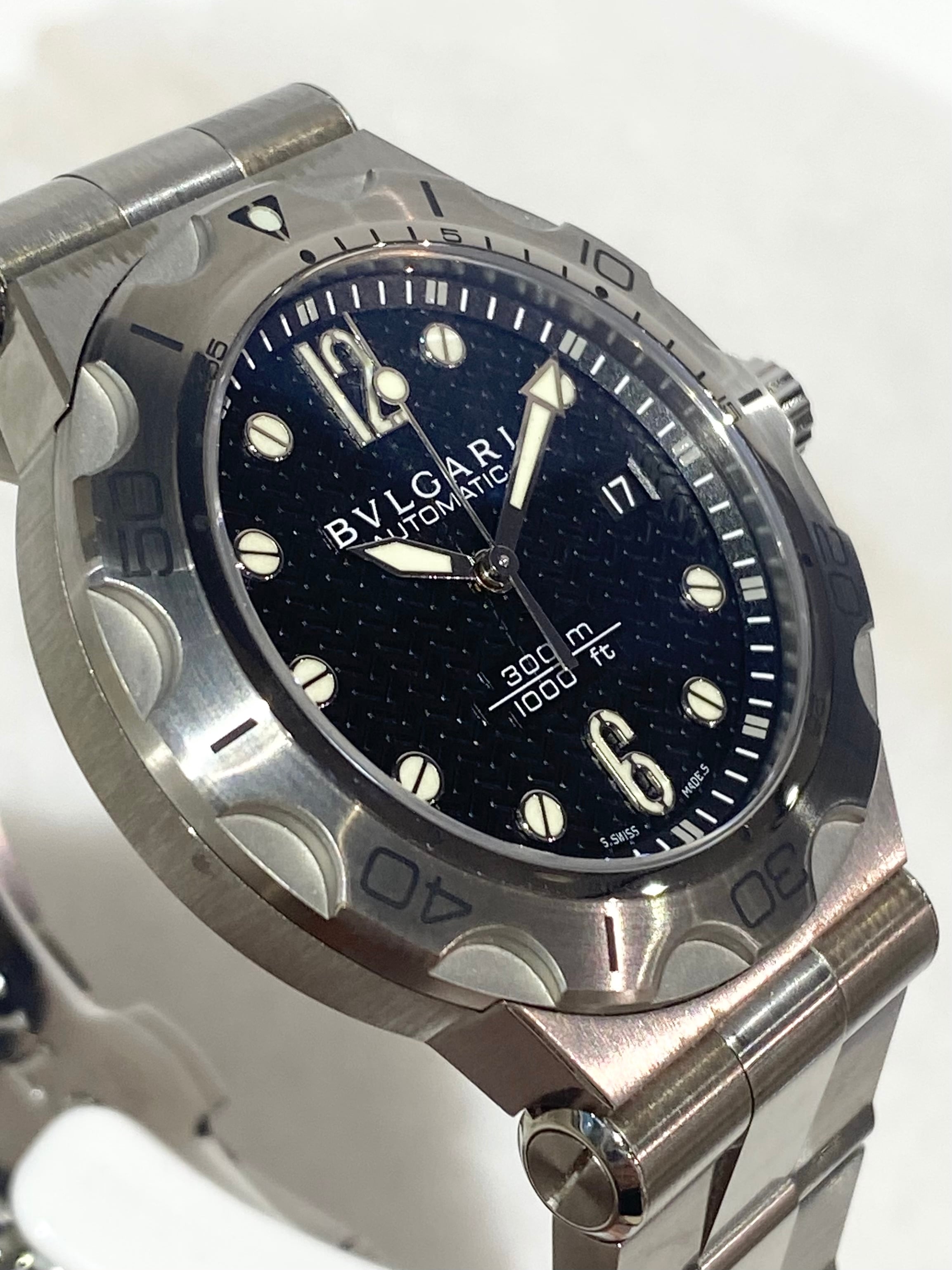 ●文字盤色:ブラック ●素材:(ケース)SS/(バンド)SS/(風防)サファイアガラス ●ムーブメント:自動巻 ●防水性能:300M防水 ●サイズ:(ケース)約31×31×12mm/(重量)約175.5g/(腕回り)約13〜19.5cm ●製造国:スイス ●保証期間:2年間