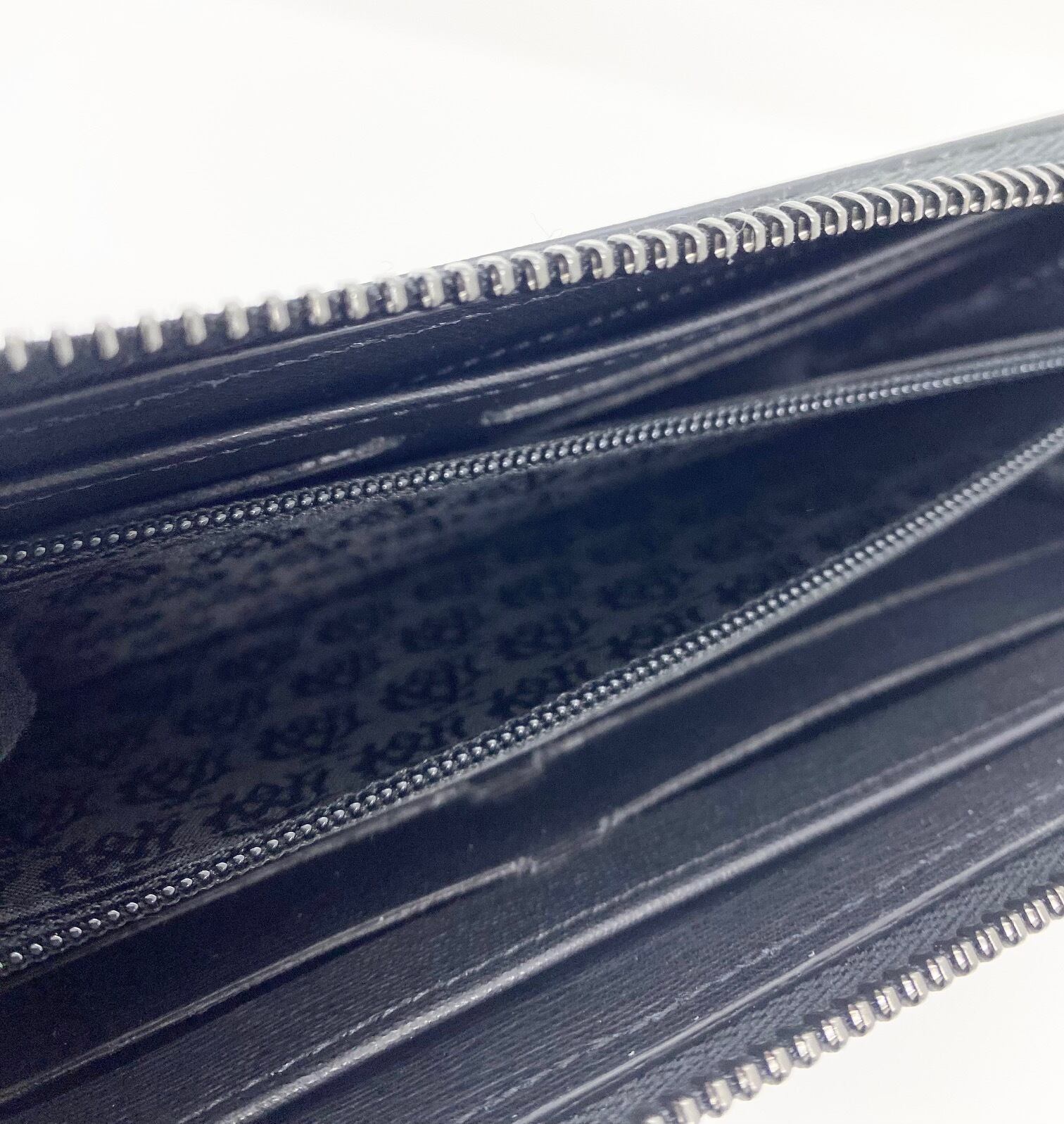 素材:レザー 色 :ブラック / ファスナー:ブラック 仕様:ファスナー開閉、ファスナー式小銭入れ×1、札入れ×2、オープンポケット×6、カードポケット×10 付属品:ブランド箱 サイズ:約19×10×2.5㎝