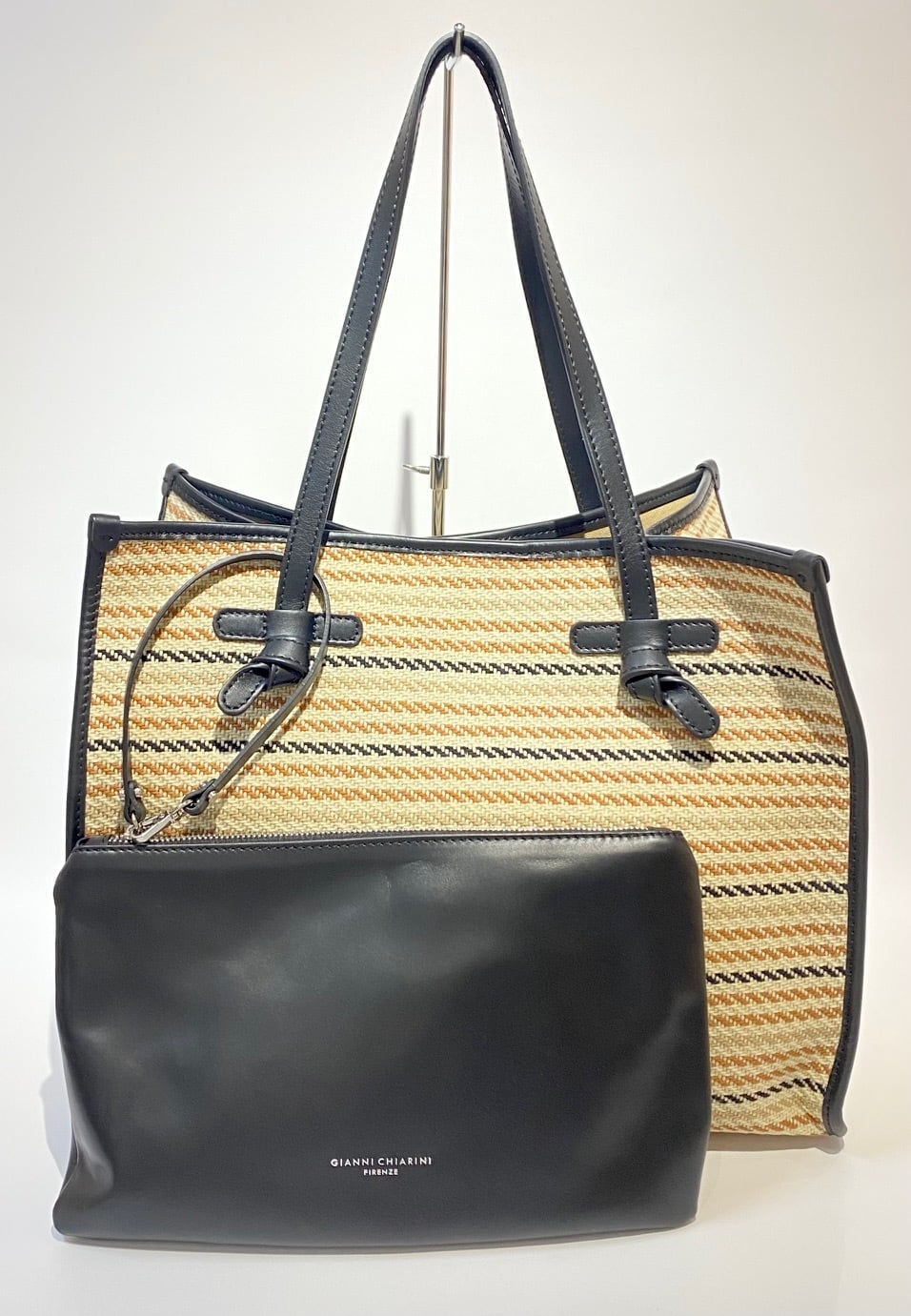 素材: 色 :ベージュ+ブラウン+ブラック系 サイズ:約30×38×15㎝ 開閉:マグネット式 付属品:ポーチ(着脱可)約18×29×D1cm、ブランド布袋 原産国:イタリア