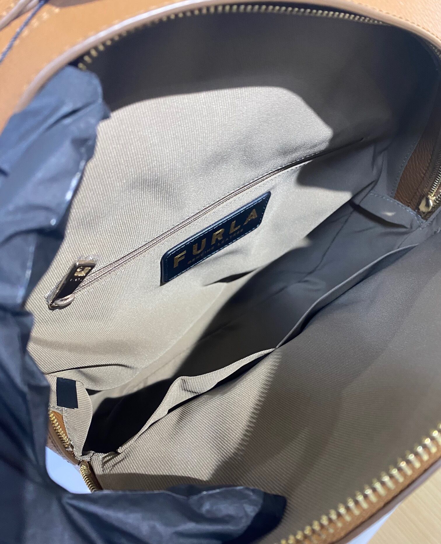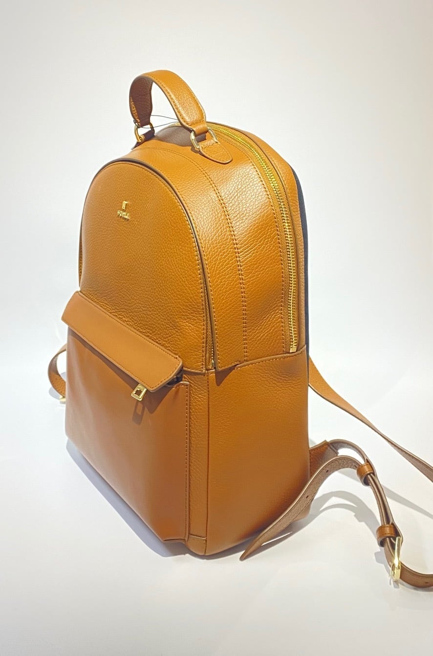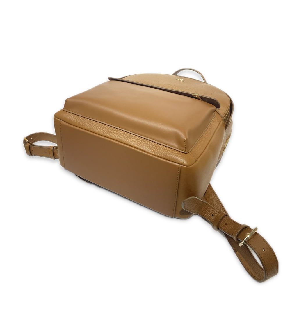 素材:レザー カラー:ブラウン サイズ:約37㎝×27㎝×11㎝(A4サイズ収納可) 開閉:ファスナー 内側:ファスナーポケット×1、オープンポケット×2 外側:ファスナー式ポケット×2 付属 :保存袋