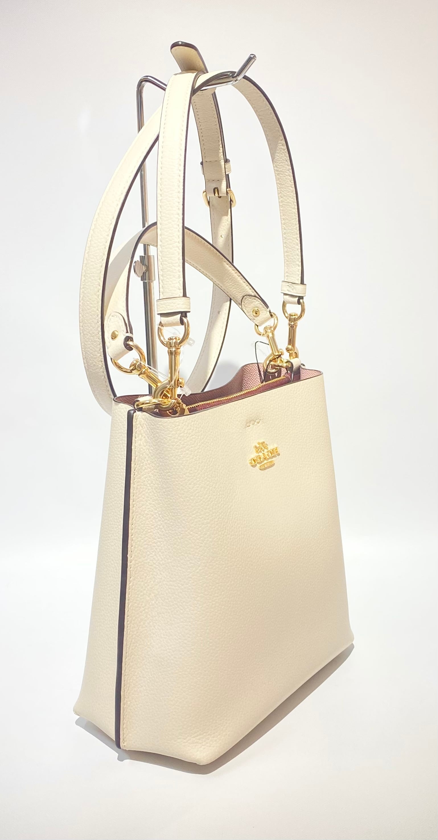 素材:レザー 色: チョーク サイズ:約22×19.5×10㎝ 開閉:マグネット 外側:- 内側:ファスナーポケット×1、内仕切り有 ショルダー長さ:約105~123㎝ 付属品:-