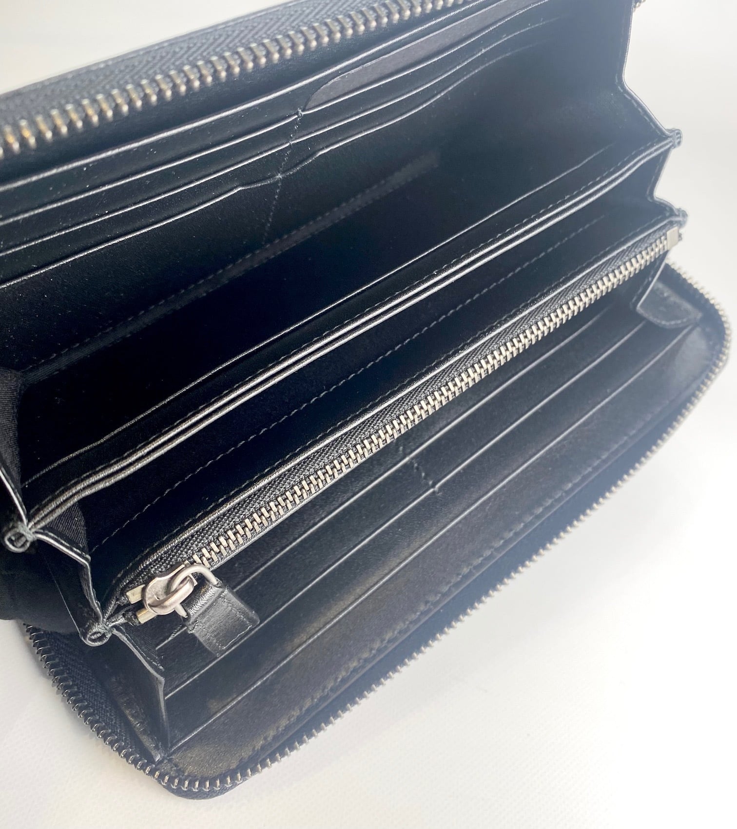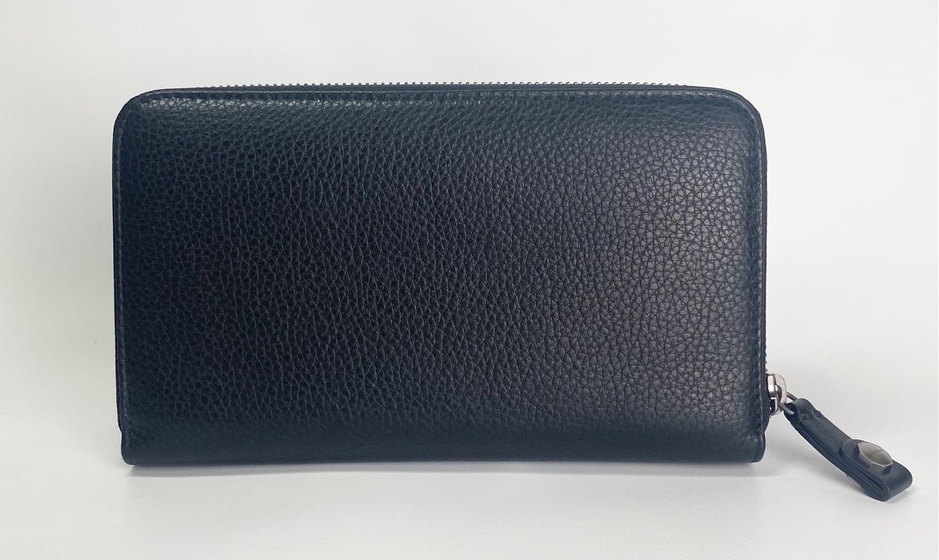 カラー:ブラック 素材:レザー サイズ:H:11.5×W:19×D:2.5cm 開閉:ファスナー 仕様:お札入れ×3、小銭入れ(ファスナー)×1、カード入れ×12、ポケット×5 付属品:ブルガリ専用ボックス 生産国:ITALY