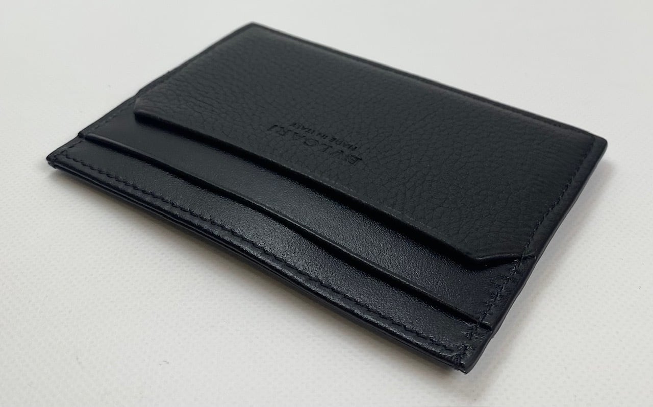 カラー: ブラック 素材:レザー サイズ:H:7×W:10.5×D:0.5cm 開閉:- 内側:カード入れ×4 外側:ポケット×1 付属品:ブルガリ専用ボックス 生産国:ITALY